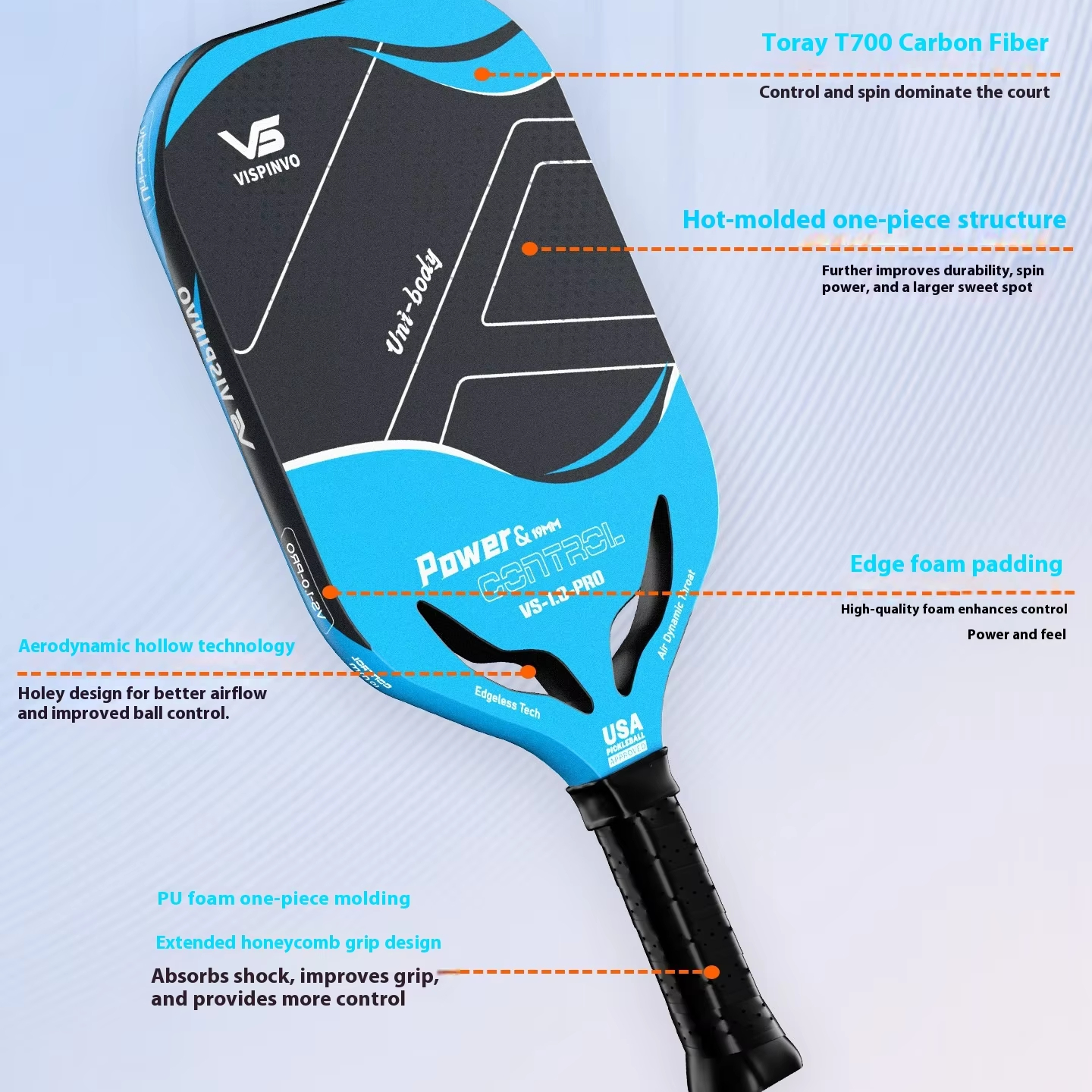 USAPA Customizable 16mm Thick Glass and Carbon Fiber Paddles for Institutional Training and Outdoor Clubs